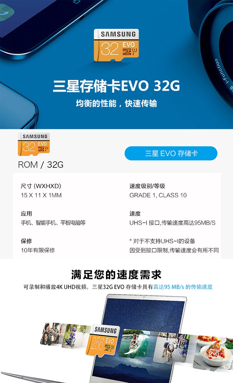 三星(SAMSUNG)存储卡32GB (Micro SD卡)黄色升级版