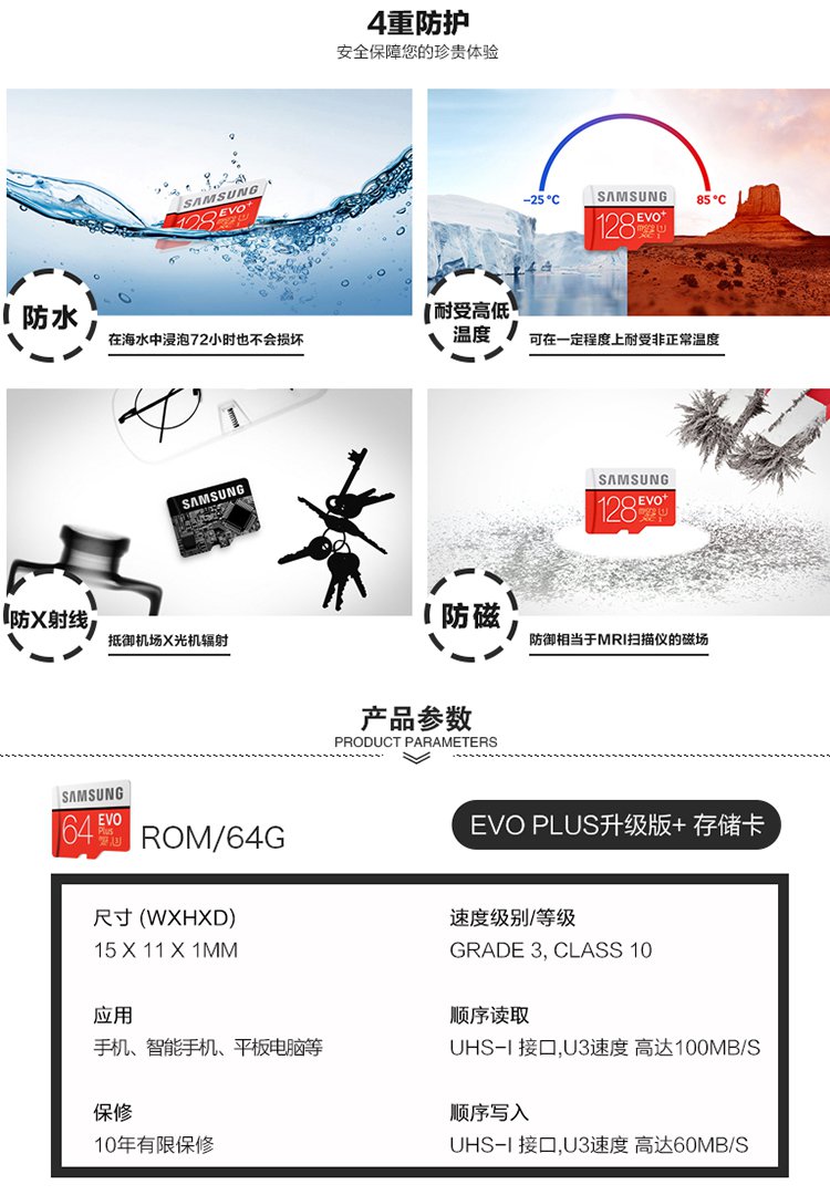 三星(SAMSUNG)存储卡64GB (Micro SD卡)红色plus升级